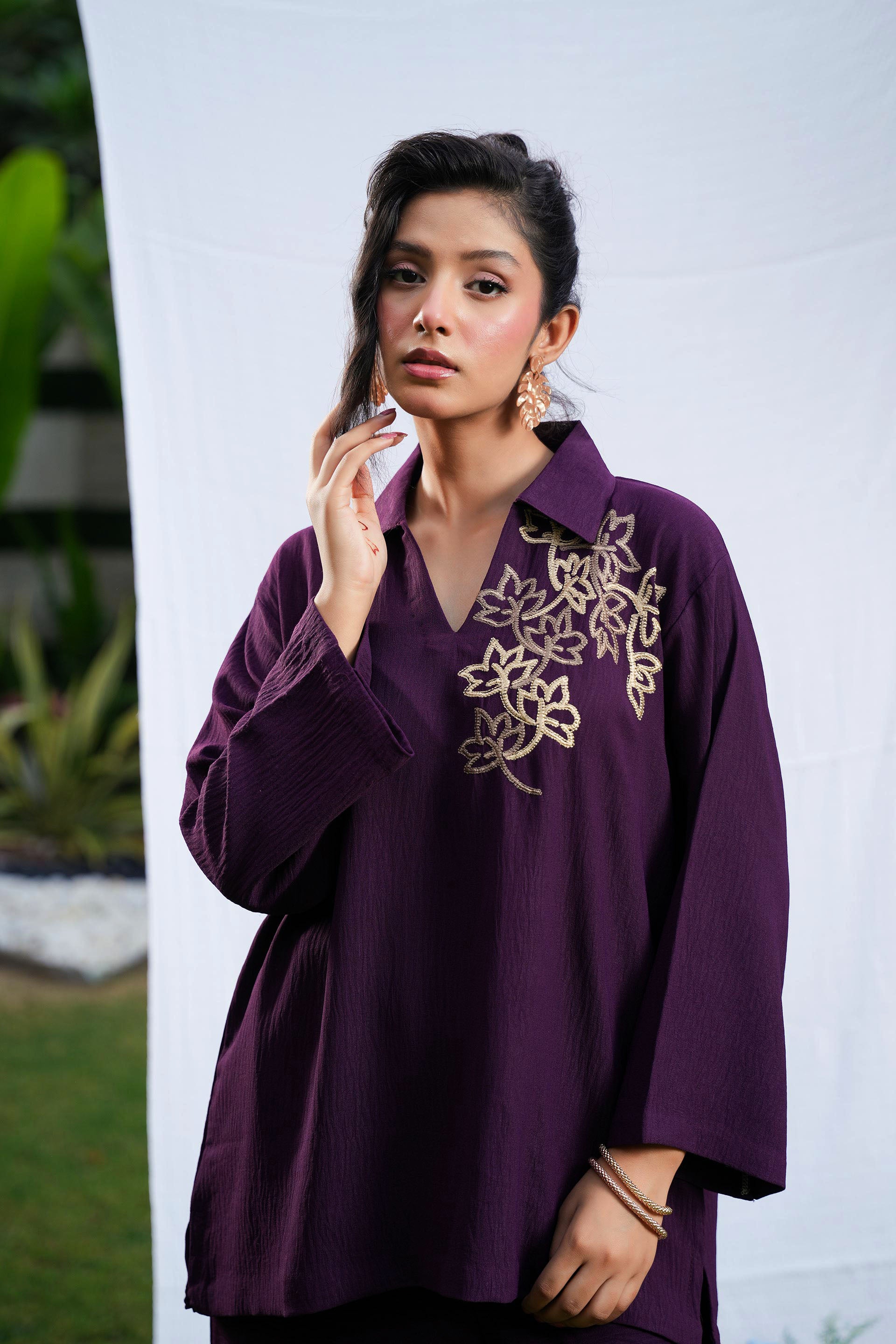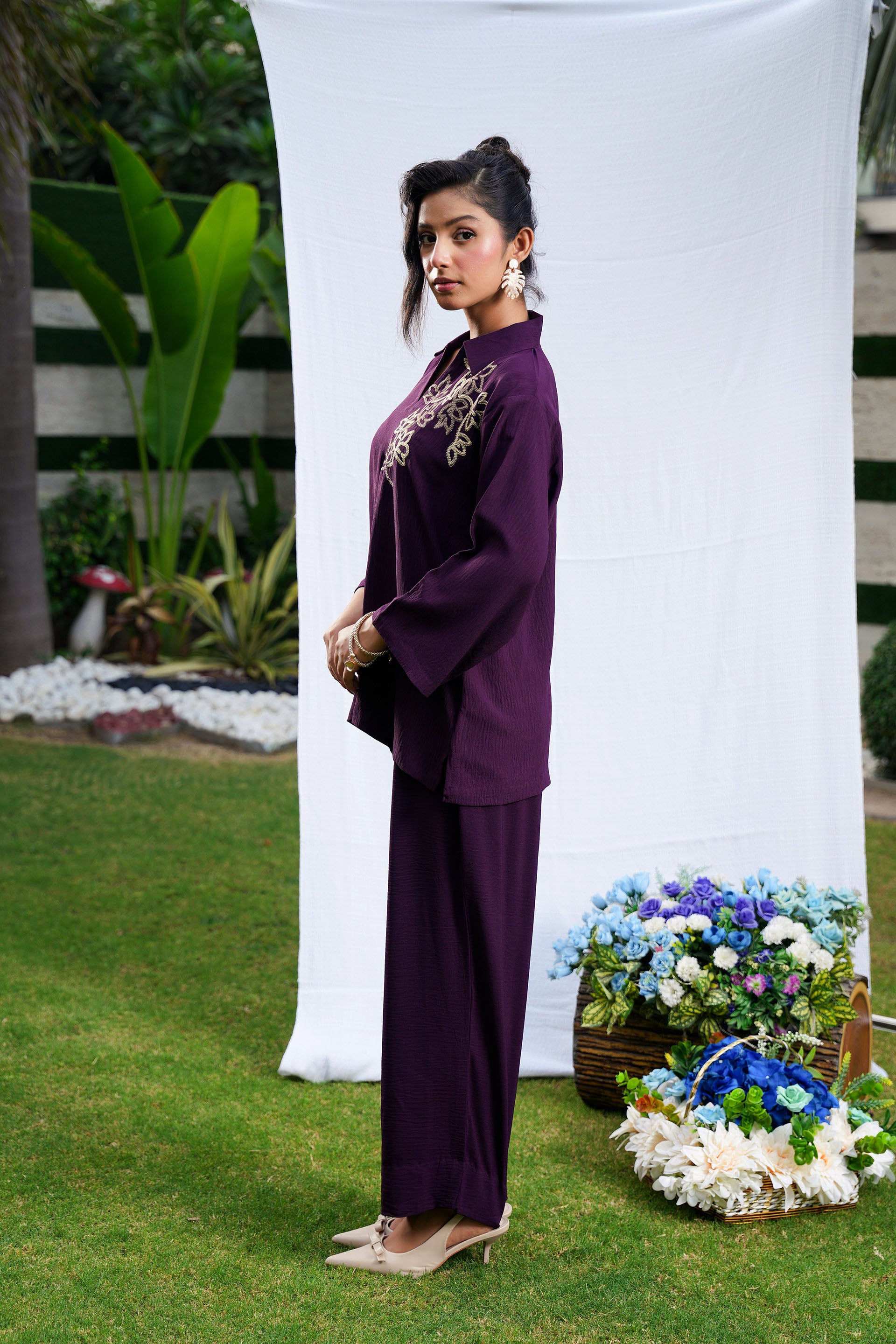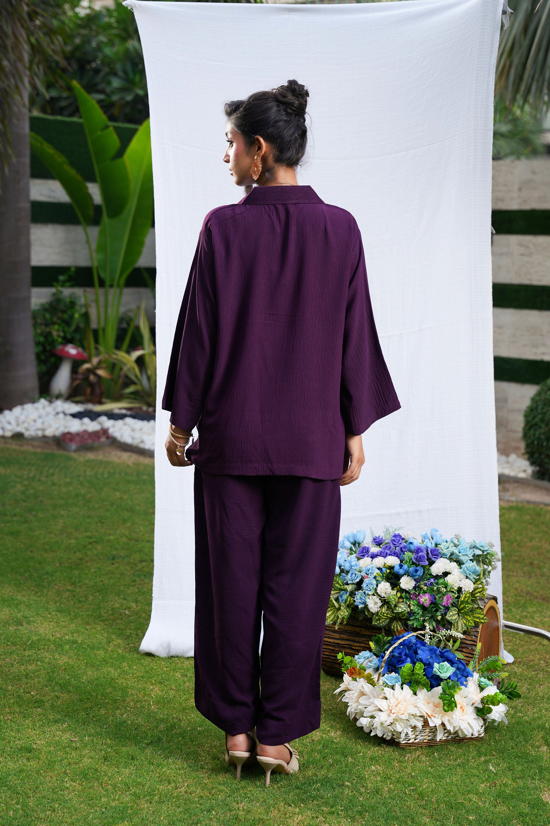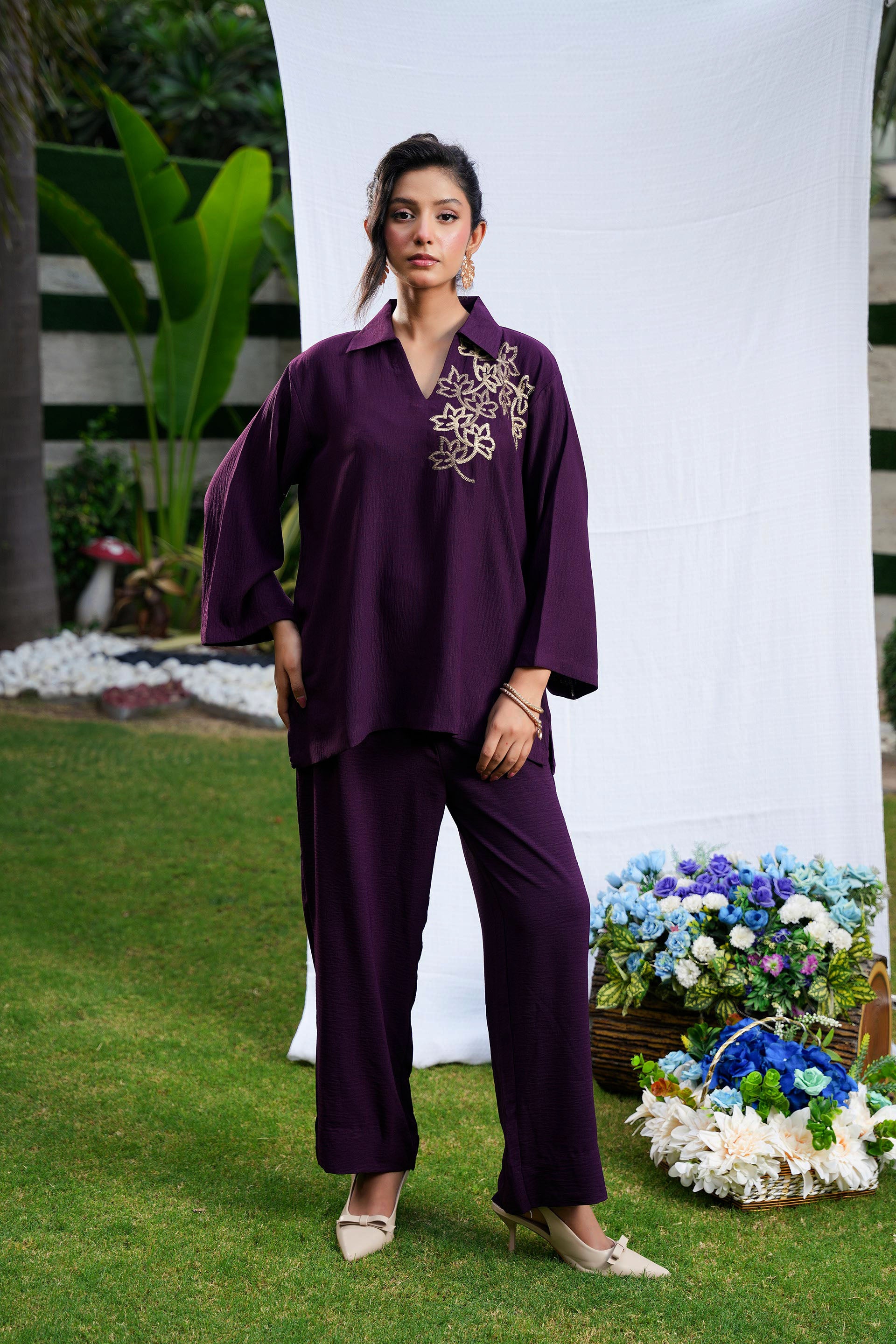 • Crafted from luxurious Turkish georgette, the Amura Set in deep plum offers a sophisticated blend of comfort and style.