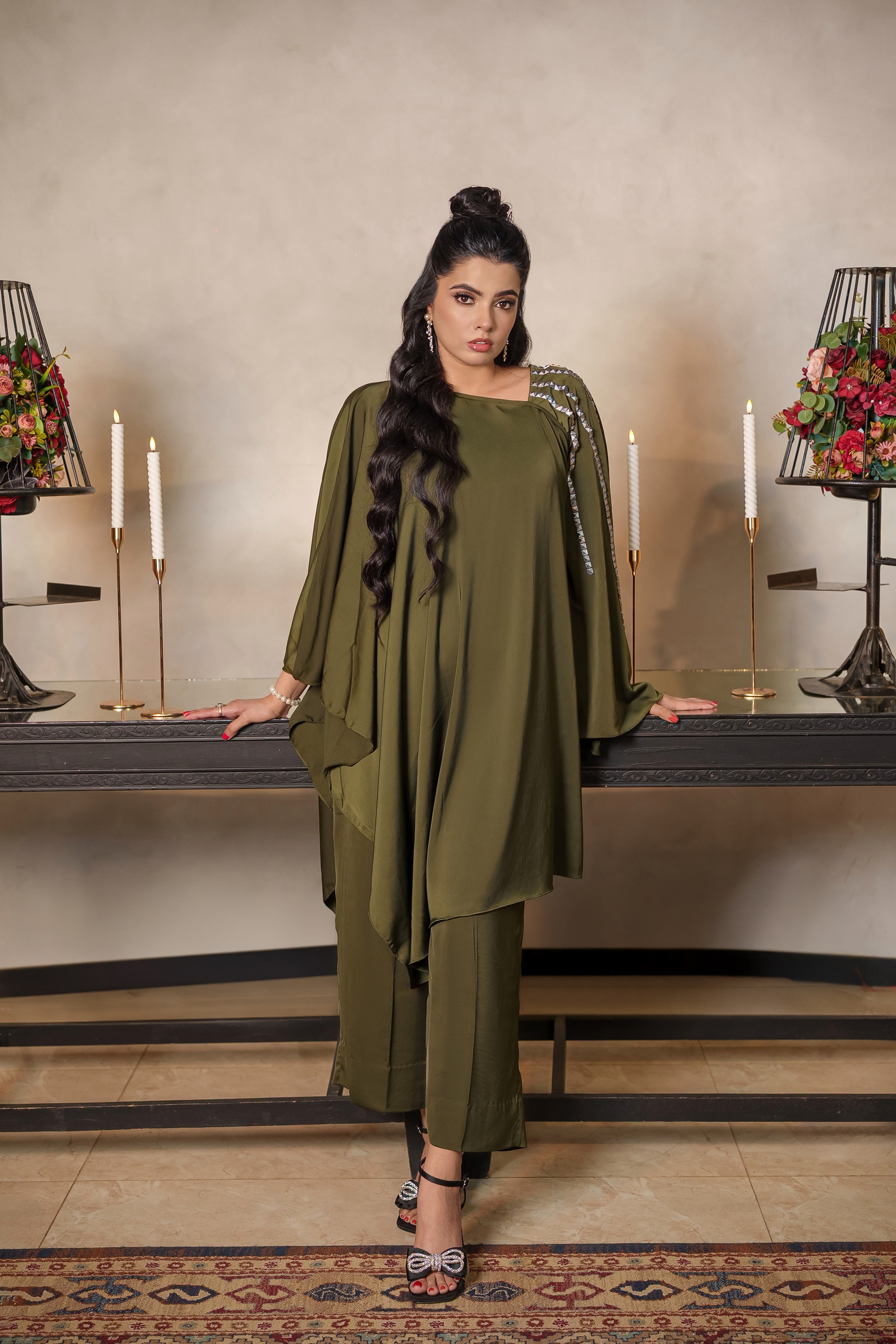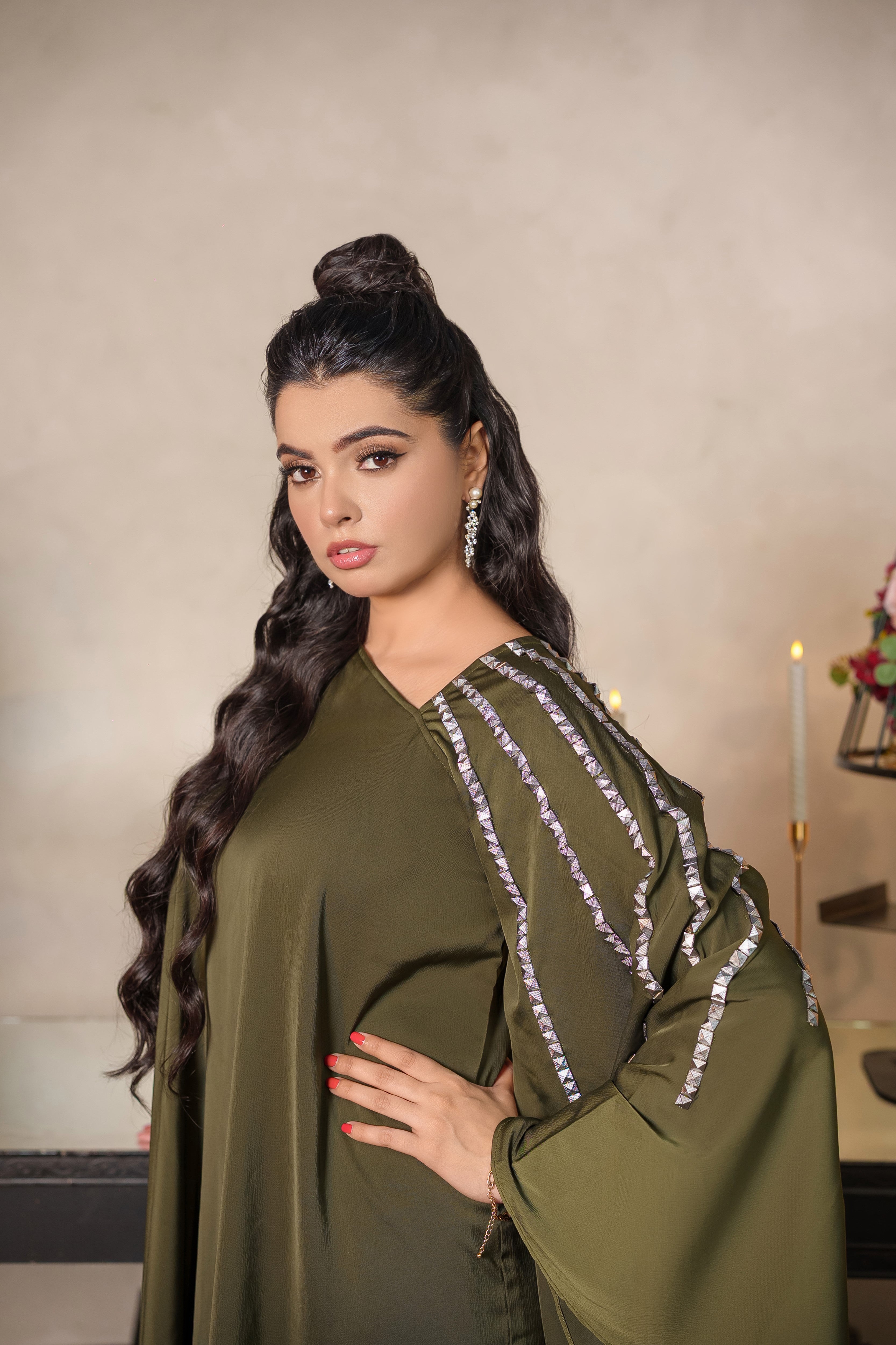 •  Dive into modern elegance with Moss Mystic’s fluid drapes in a lush moss green.